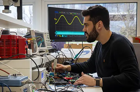 A member of tepeo staff is working on some electrics for their electric boilers.